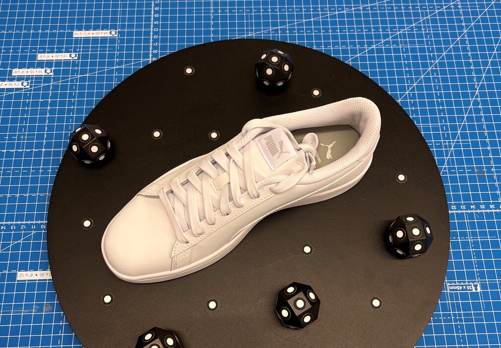Mittels unseres Laserscanners HandySCAN BLACK l Elite Limited konnten wir die Geometrie der verschiedenen Sneakermodelle und Schuhgrössen präzise erfassen und dem Kunden die benötigten 3D Daten für seine Konstruktion zügig zur Verfügung stellen.