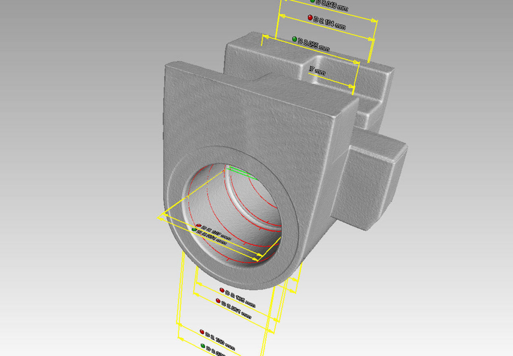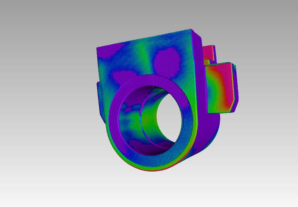 Ein Kunststofflager verursachte im verbauten Zustand Probleme bezüglich der längeren Belastungen, denen es standhalten musste. Mittels Computertomografie digitalisierten wir das Bauteil und erfassten das gesamte Materialinnere. Anhand der CT-Daten konnten wir einen Soll-Ist-Vergleich, eine 3D-Messung und eine Defektanalyse durchführen. Die Ausmessung ergab, dass die Lagerbohrungen leicht elliptisch waren. Zudem zeigte sich in einigen Bereichen eine starke Bildung von Vakuolen, das sind kleine Hohlräume im Material. Im virtuellen Belastungstest, direkt anhand der CT-Daten, zeigten die Teile die gleichen Mängel wie in der realen Situation. Basierend auf diesen Erkenntnissen nahm unser Kunde Korrekturen an den Spritzgussparametern vor. Somit konnte ein Korrekturloop am Werkzeug und somit weitere Kosten eingespart werden. In einer Simulation prüften wir das verbesserte Bauteil und der Kunde konnte das Kunststofflager final optimieren, bevor er mit der Serienproduktion startete.